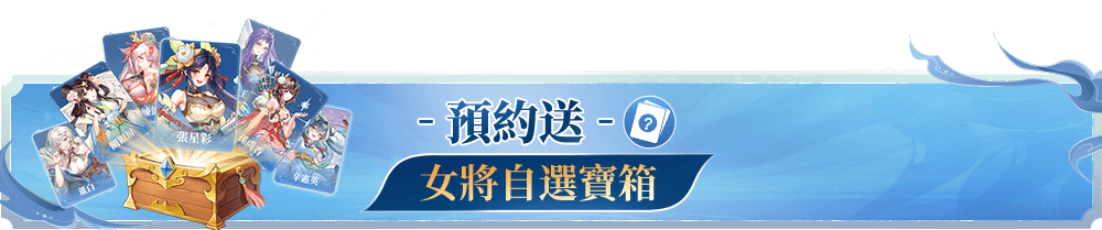 3活動期間內完成預約獲得的強力女將自選寶箱請待遊戲上市後登入遊戲進行獎勵選擇。