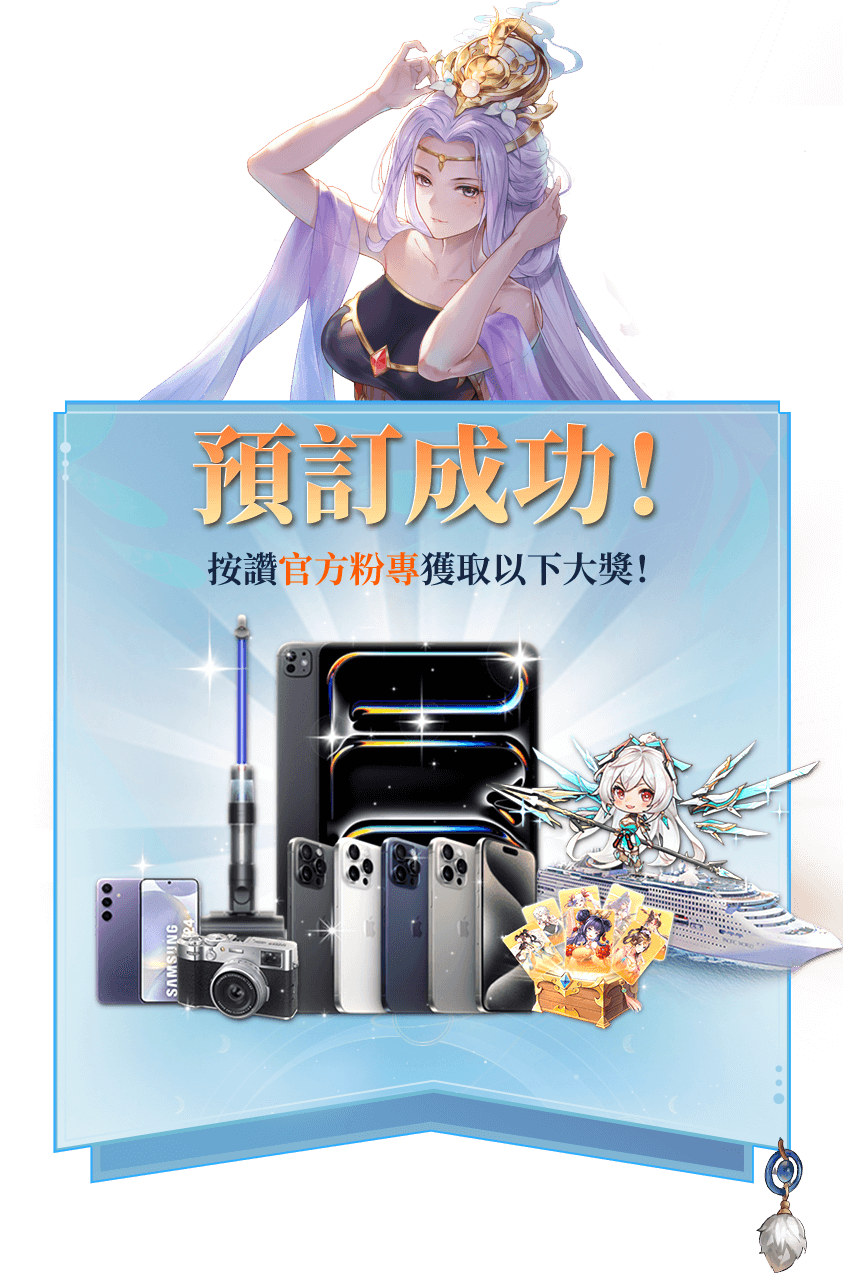 3.活動期間內完成預約獲得的強力女將自選寶箱請待遊戲上市後登入遊戲進行獎勵選擇。